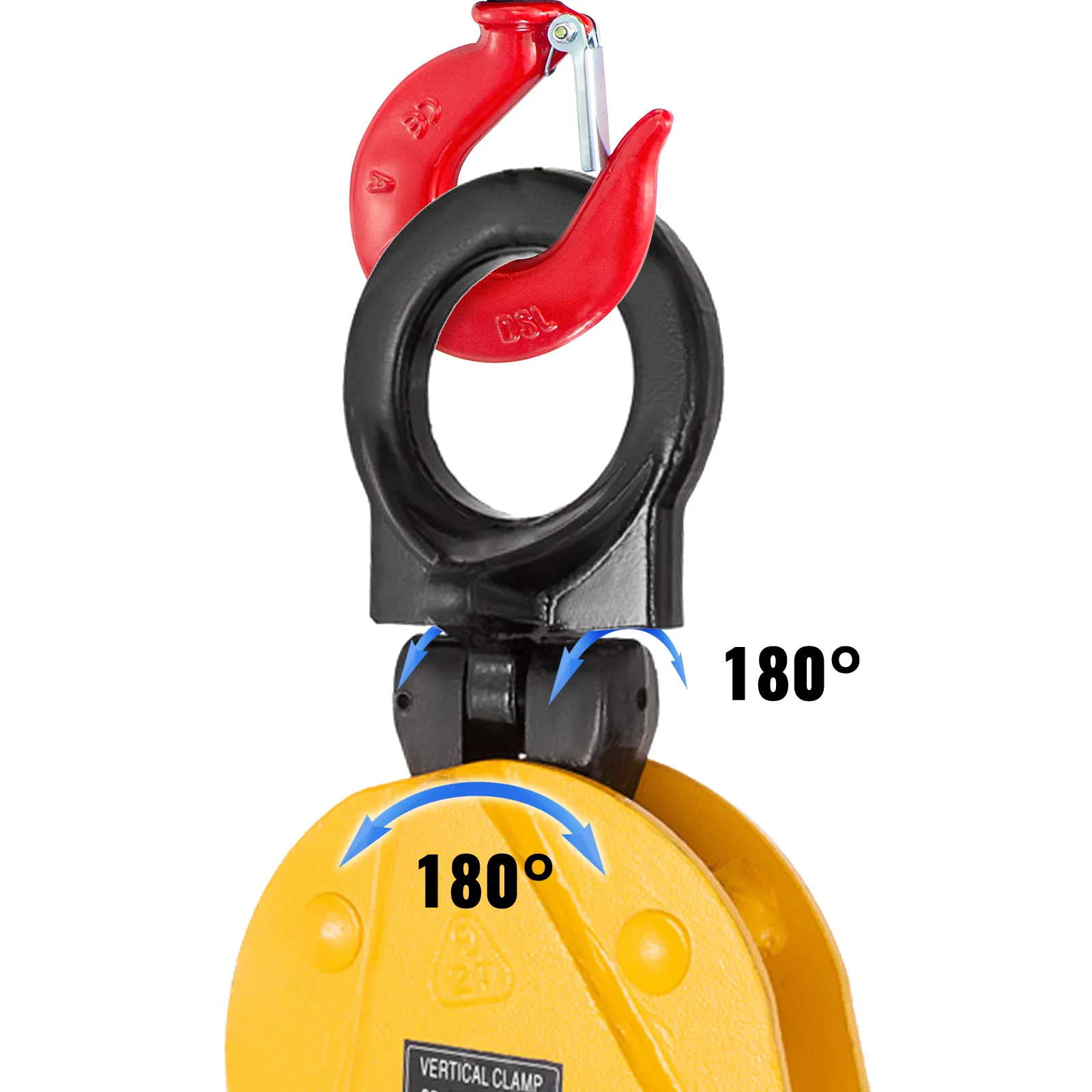 Seguro y flexible: nuestra abrazadera de elevación cuenta con un mecanismo de resorte de seguridad que garantiza que la abrazadera no se deslice al levantar o bajar una carga, y el diseño de enganche de rotación de 180° permite colocar fácilmente la abrazadera según lo necesite.