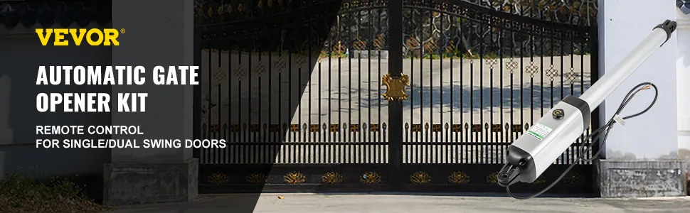 Este es un potente kit de apertura automática de puertas para la apertura y cierre de puertas batientes vehiculares. Te sientas en el auto y abres/cierras rápidamente la puerta con un control remoto. Funciones: Arranque y parada suaves, detección de obstáculos, cierre automático, interruptor de límite, etc. Fácil de instalar con todo el kit de accesorios y manual de usuario detallado. Es una herramienta imprescindible para la puerta de su garaje.