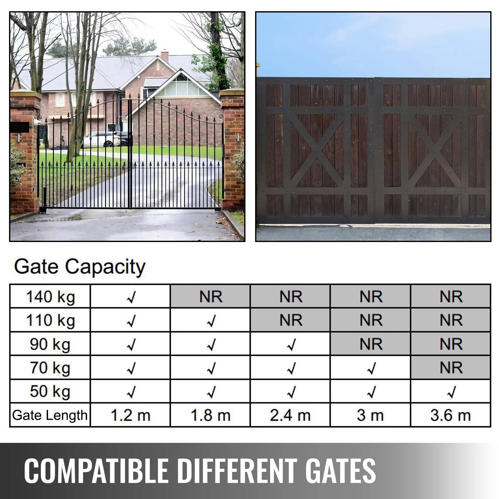 Este abridor de portón profesional es adecuado para todo tipo de portón, incluidos eslabones de cadena, tubos, paneles, vinilo y madera. Perfecto para el hogar, las industrias y el garaje.