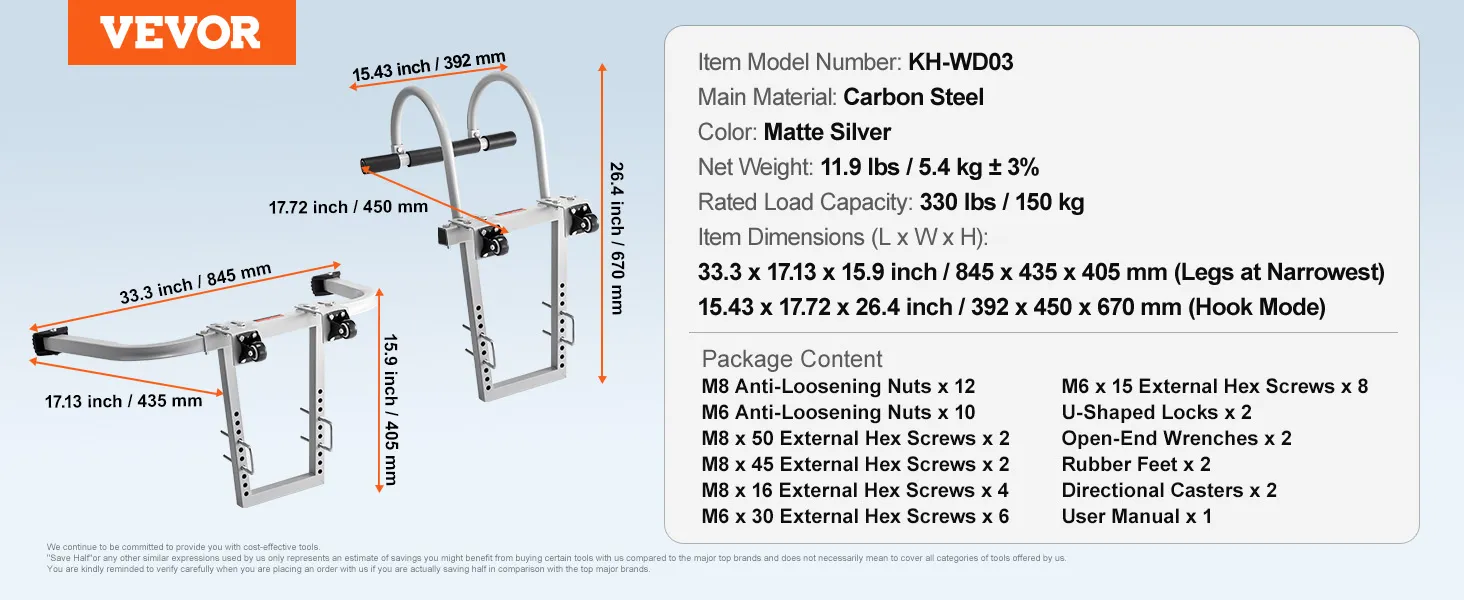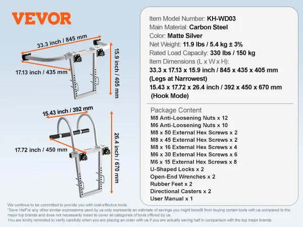 Amplia compatibilidad: se adapta con precisión a escaleras con un ancho de escalón de ≥11,02 pulgadas, compatible con escaleras de madera, fibra de vidrio y aluminio. Fabricado en acero de alta calidad, ofrece durabilidad y soporte estable.