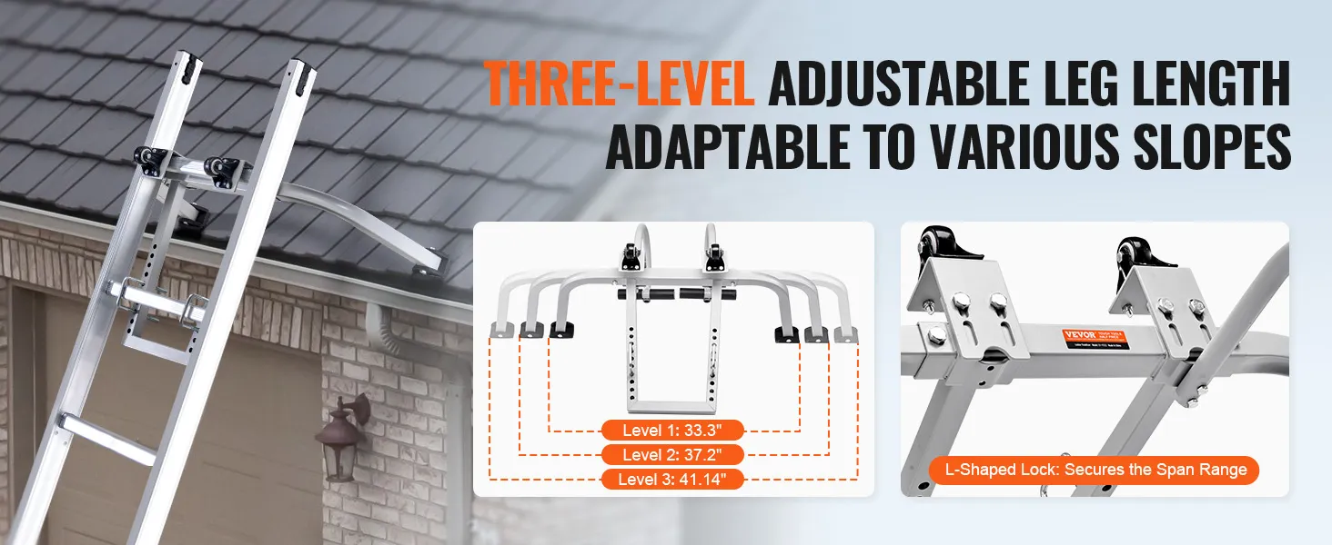 Alta capacidad de carga de 330 libras: con una capacidad de carga de hasta 330 libras, este estabilizador de escalera de acero al carbono garantiza que su trabajo sea seguro. Los orificios de montaje ajustables de doble fila le permiten adaptarse a varias superficies inclinadas, lo que garantiza un funcionamiento suave.