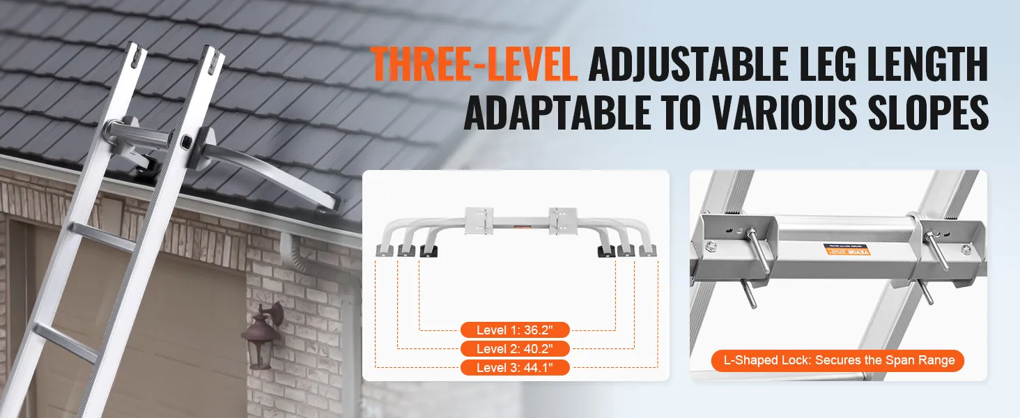 Estabilizador de escalera VEVOR, separador de escalera extensible, accesorio resistente para escaleras de pared/ala, para canalones de techo, fácil de usar, amplia adaptabilidad y patas de goma antideslizantes, capacidad de peso de 330 lb