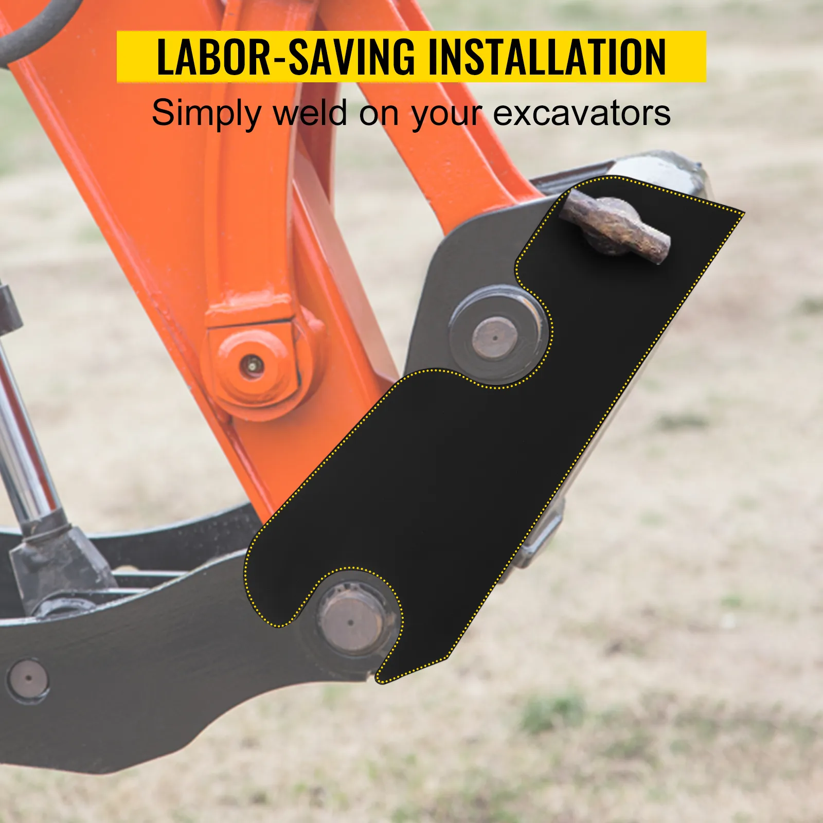 【ALTA DUREZA Y GROSOR】- Las orejas del cucharón de la excavadora miden 15-3/4'' de largo, 7'' de ancho, 3/4" de grosor cada una. Diseñamos la placa de acero para aumentar la resistencia al impacto de las piedras. y arena