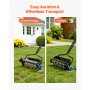 Gracias a su mango en forma de V de 130 cm de largo, podrá mantener una postura natural incluso durante un uso prolongado. El aireador de césped está equipado con robustas ruedas de 4 pulgadas que facilitan su empuje y maniobrabilidad.