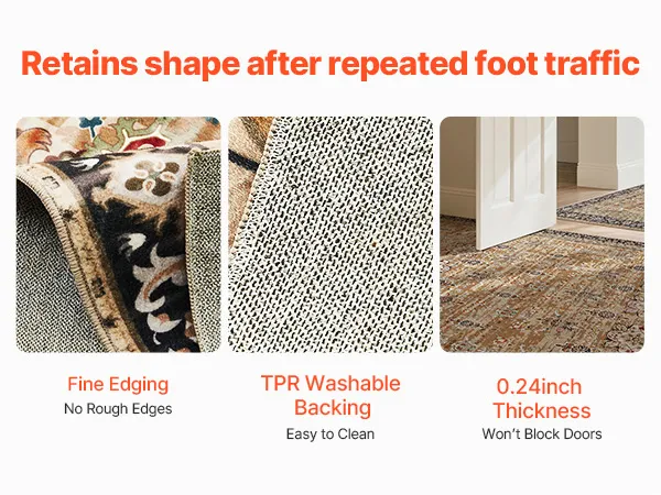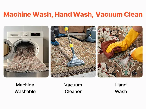 Lavable a máquina: Diseñado con reverso de agarre TPR y lujosos bordes de imitación cachemira que se mantienen perfectamente planos. Supera las lavadoras a la perfección: ¡lavar, centrifugar, sacudir suavemente y listo! Recomendamos evitar el uso prolongado de aspiradoras robot de alta potencia para conservar la alfombra en perfectas condiciones.
