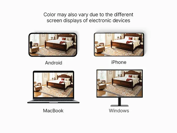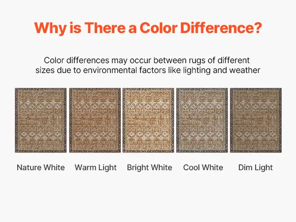 P: ¿Por qué el color de la alfombra difiere del que se muestra en el sitio web? R: El color de la alfombra que aparece en las imágenes puede verse afectado por la iluminación ambiental y la resolución de color de los dispositivos electrónicos. Sin embargo, nos esforzamos por mostrar el color y el diseño lo más fielmente posible al producto real.