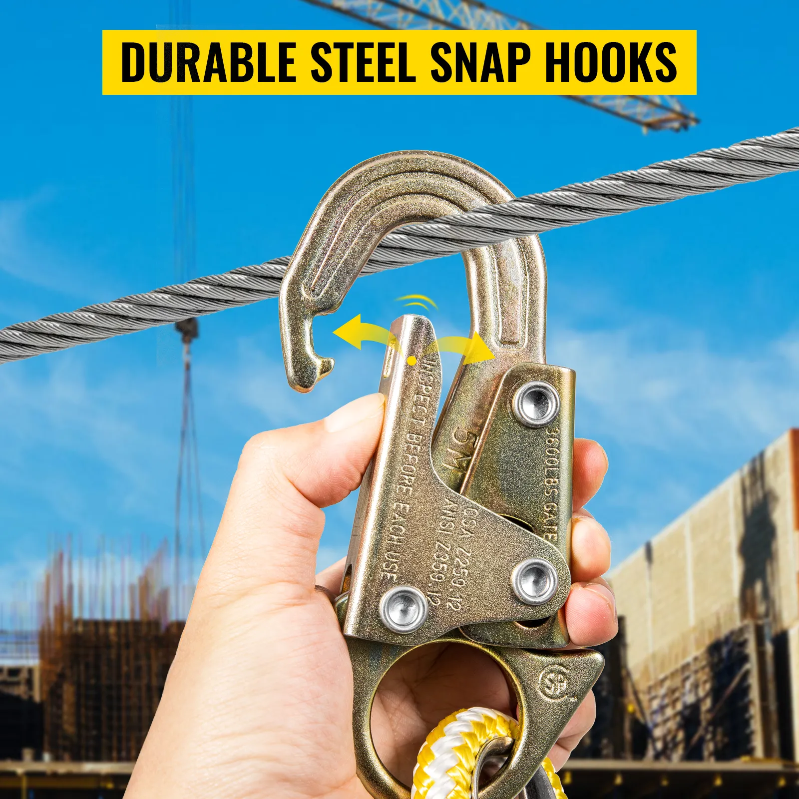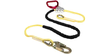 Nuestro cordón de posicionamiento en el trabajo viene con un gancho giratorio de acero para una conexión resistente y sin esfuerzo con su otro equipo de seguridad.