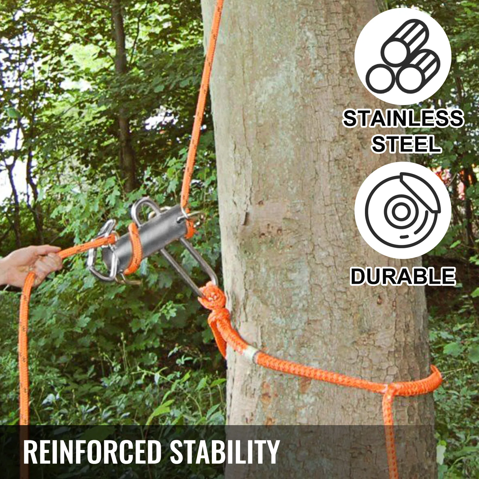 El aparejo de acero inoxidable, combinado con una cuerda, es perfecto para que los madereros bajen objetos pesados o bajen el árbol que cae cuando cortas un árbol.
