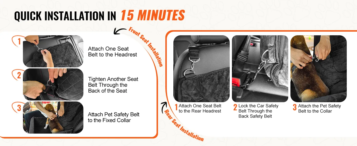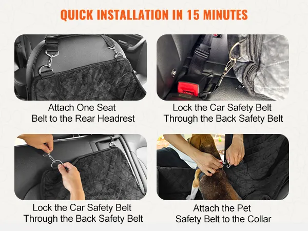 Cuenta con cinturones de seguridad ajustables y una correa de seguridad para mascotas para una sujeción segura. Fácil de instalar para una sola persona.