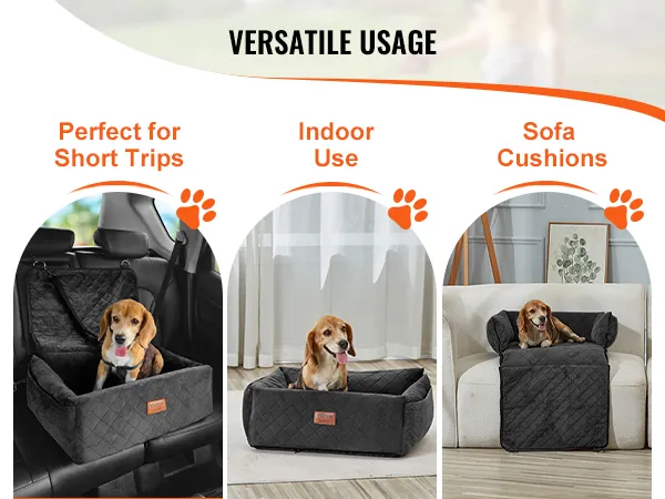 Uso versátil: nuestra cama para perros para el automóvil está disponible en varios tamaños y colores y se adapta a mascotas de hasta 40 libras. Es adecuada para todo tipo de vehículos, se puede usar en interiores como un cómodo sofá para mascotas y es portátil para usar al aire libre.