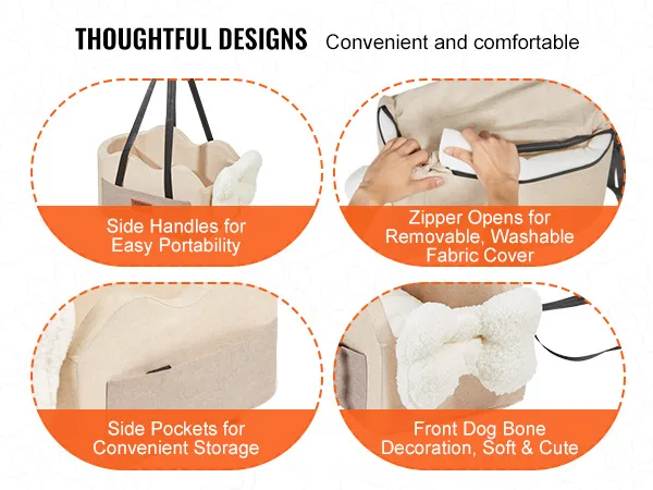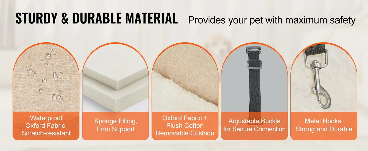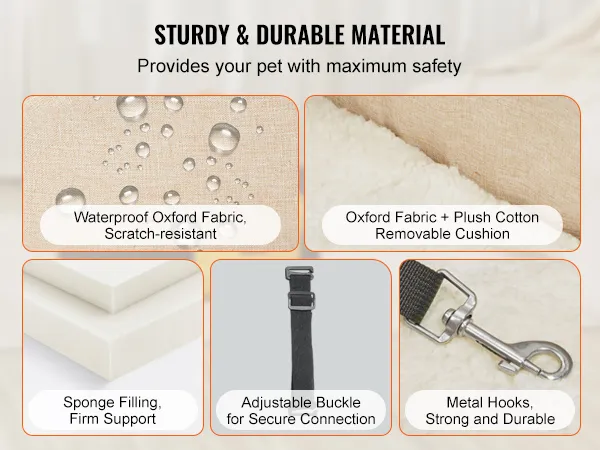 Seguro y cómodo: nuestro asiento de coche para perros con consola presenta un diseño de cierre completo con tela Oxford impermeable y relleno de esponja. Resiste el desgaste, mantiene su forma e incluye una almohadilla de felpa suave y extraíble para mayor comodidad, lo que garantiza la seguridad de su mascota y reduce la ansiedad durante el viaje.
