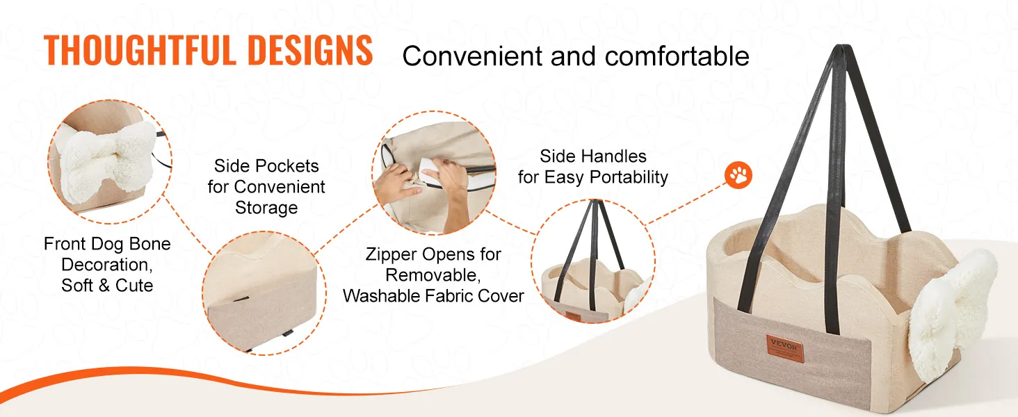 Fácil de limpiar: diseñado para la comodidad, este asiento de seguridad para cachorros tiene una funda totalmente extraíble y una cremallera deslizante incorporada. Saque el relleno y la funda se puede lavar a máquina, lo que hace que el mantenimiento sea sencillo y sin complicaciones.