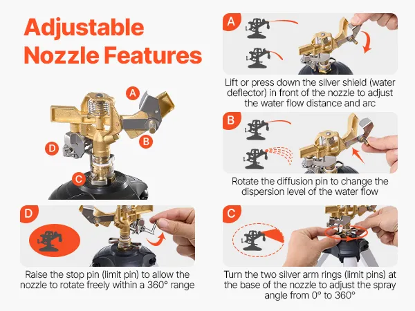 Adjustable Sprinkler Head: The lawn sprinkler head rotates freely from 0° to 360°, with adjustable water flow range and arc, suitable for gardens and yards of different shapes and sizes. Recommended water pressure: 20-80 psi.