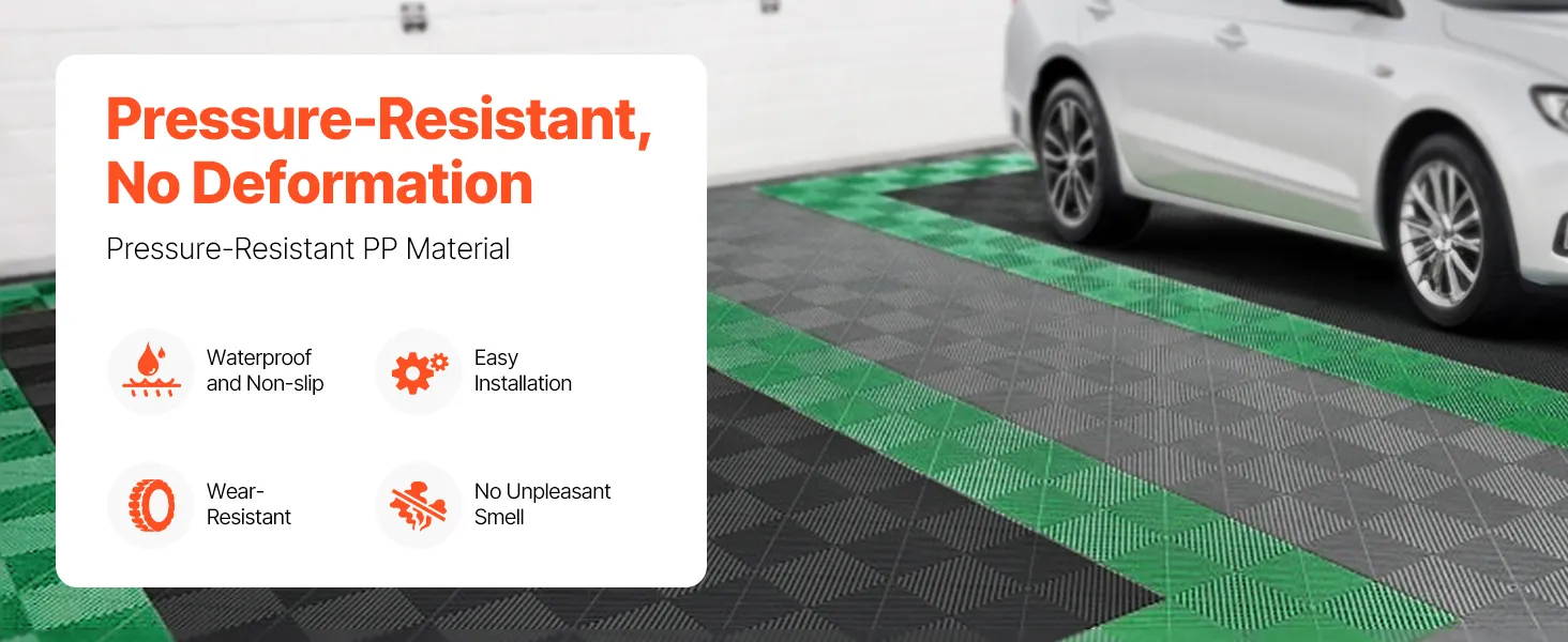 PP de alta resistencia: esta estera de drenaje está hecha de material PP duradero, lo que la hace ideal para garajes, donde resiste el tráfico frecuente de vehículos sin perder la forma. En comparación con los plásticos duros tradicionales, el PP ofrece mayor durabilidad, lo que garantiza la estabilidad bajo cargas pesadas y extiende su vida útil.