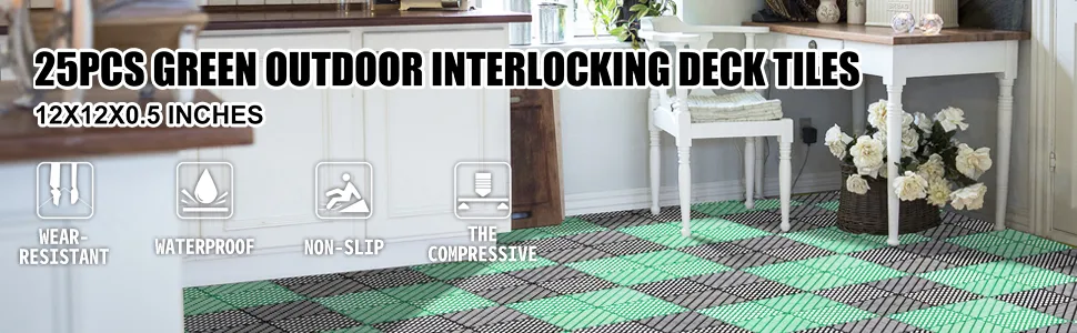 25 baldosas de cubierta entrelazadas verdes.