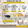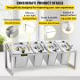 En este juego se incluyen 4 recipientes para alimentos SUS 304: 3 recipientes de 1/9 y 1 recipiente de 1/6, perfectos para almacenamiento por separado. Dimensiones de la bandeja de 1/9: 6.9"x4.3"x5.9"; dimensiones de la bandeja de 1/6: 6.9"x6.4"x5.9". Sus capacidades alcanzan los 1,6 Qt y 2,6 Qt, respectivamente. Cada sartén viene con una tapa y un cucharón.