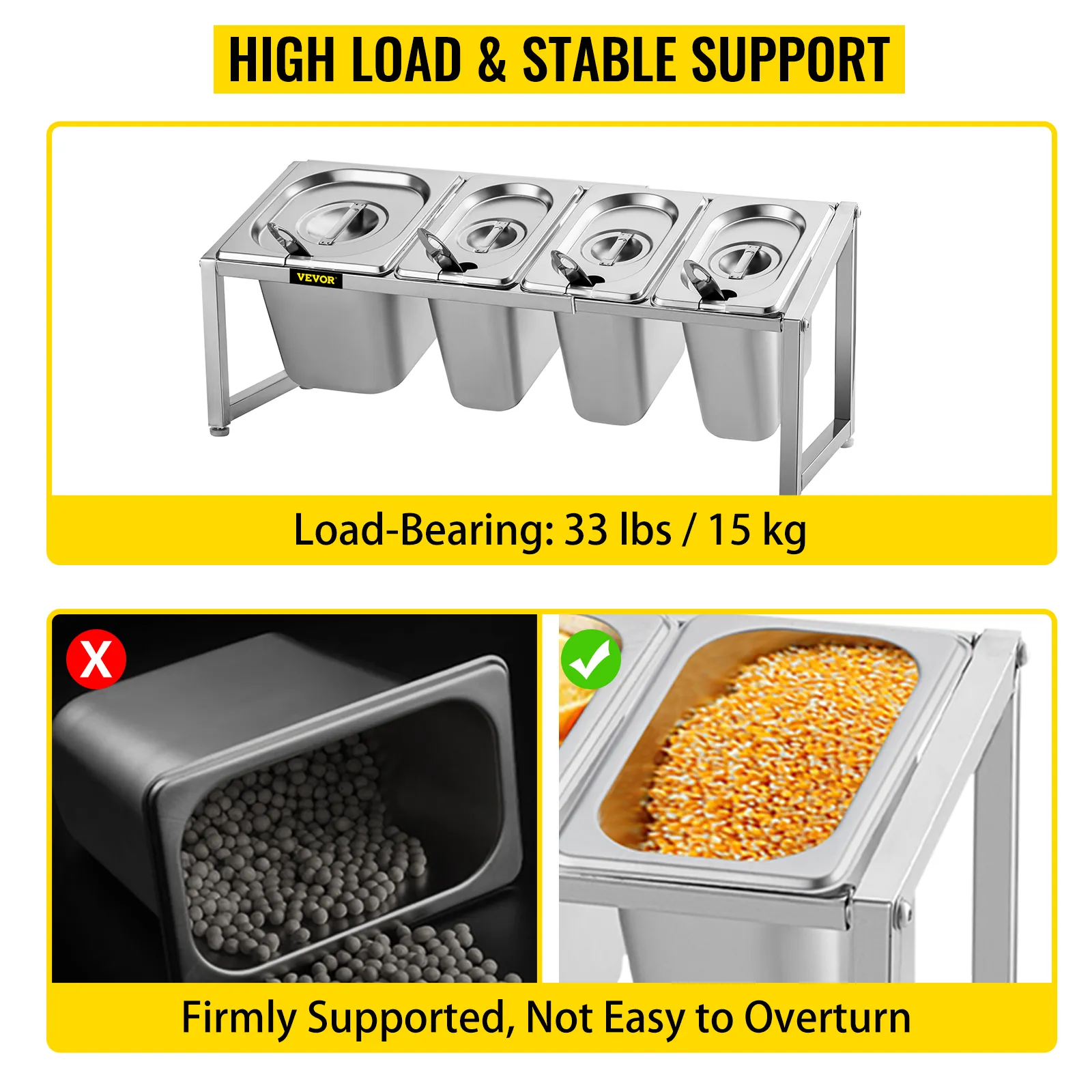 En comparación con la colocación directa de los recipientes para alimentos sobre la mesa, que tiende a volcarse o volcarse, este marco adopta acero inoxidable duradero y proporciona un soporte firme, manteniendo estables múltiples recipientes para alimentos. PS Su capacidad de carga alcanza los 33 lbs/15 kg.