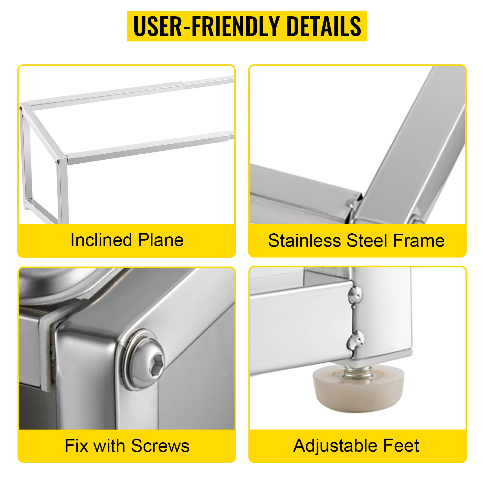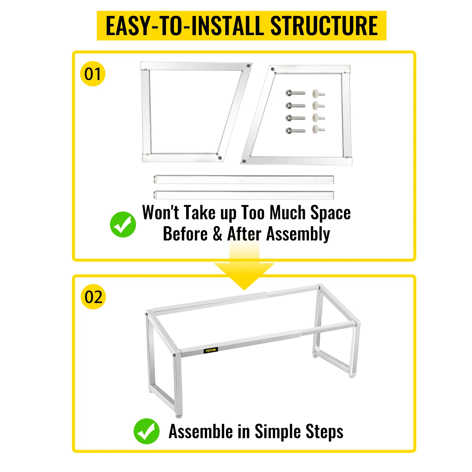 Este marco de acero inoxidable con una estructura simple es fácil de montar y desmontar con el manual del usuario. Conecte y apriete todas las piezas con los 4 tornillos incluidos, luego recibirá un soporte firme. Después del desmontaje, también ahorra espacio para el almacenamiento.