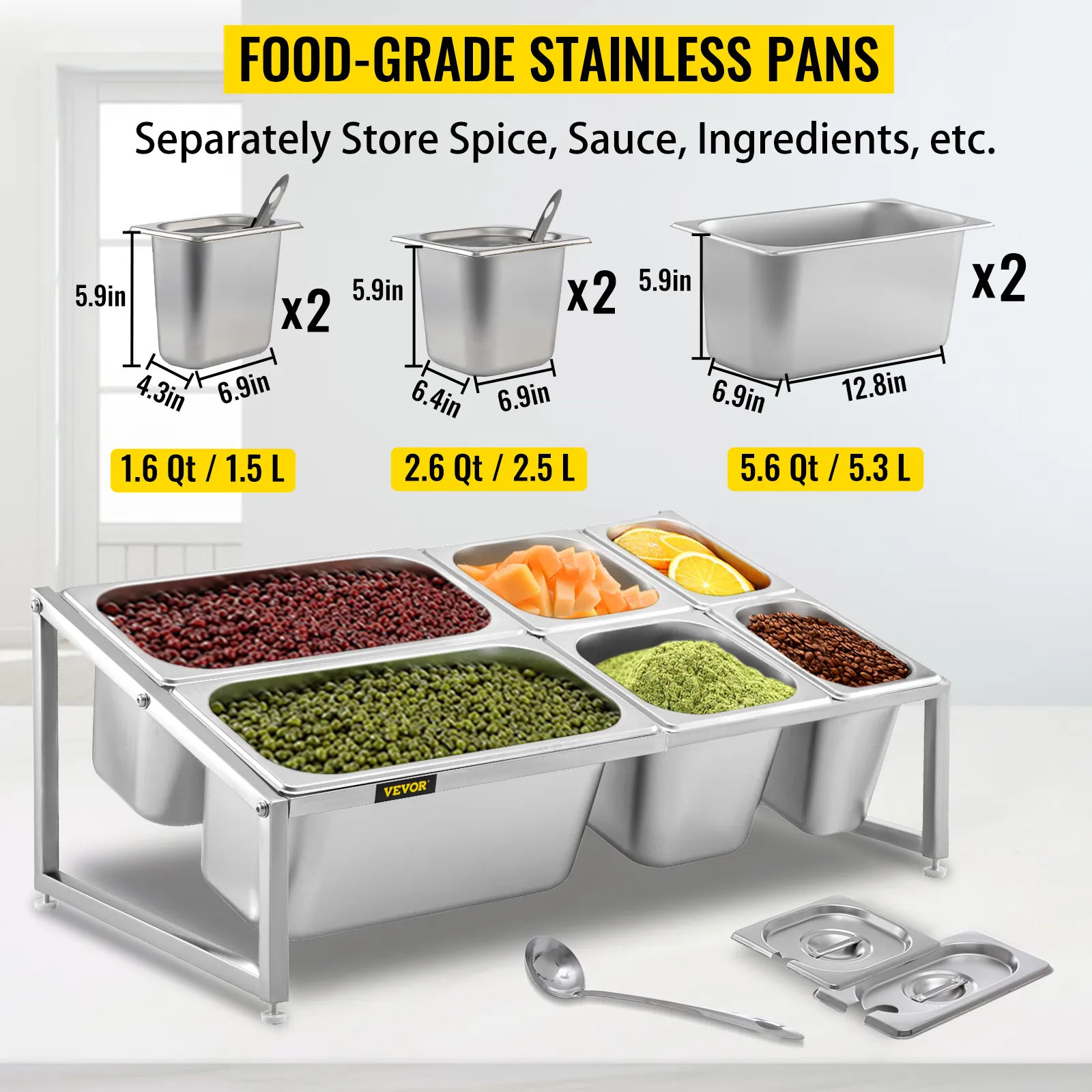 Puede poner varios ingredientes y materiales en los recipientes, como condimentos, especias, salsas, mermelada, sopa dulce, granos de café, frutas, verduras, etc. Este especiero extensible es adecuado para cocinas domésticas o comerciales, cafeterías, tiendas de bebidas, restaurantes, etc