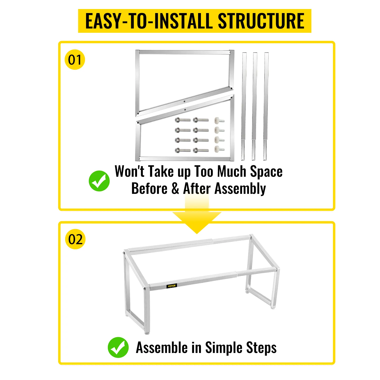Este marco de acero inoxidable con una estructura simple es fácil de montar y desmontar con el manual del usuario. Conecte y apriete todas las piezas con los tornillos incluidos, luego recibirá un soporte firme. Después del desmontaje, también ahorra espacio para el almacenamiento.