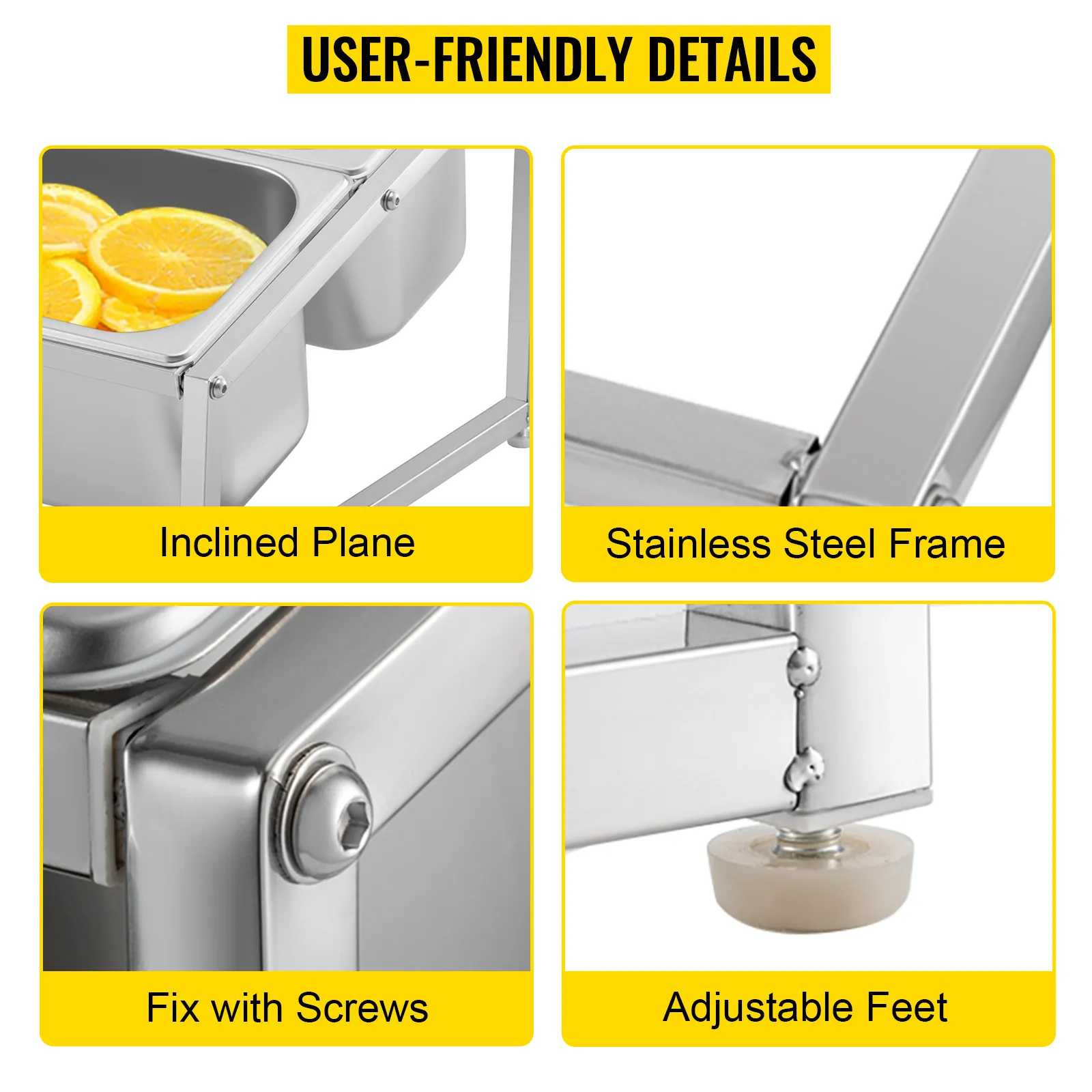 - Este especiero de 2 niveles consta de un marco expandible (13,8"/35 cm a 23,6"/60 cm ajustable), dos sartenes de 1/9 de 1,6 cuartos, dos sartenes de 1/6 de 2,6 cuartos y dos sartenes de 1/3 de 5,6 cuartos de galón. Todas las piezas adoptan acero inoxidable para un uso duradero. La estructura simple hace que sea fácil de armar y que ahorre espacio para guardar. Seguro que será su ayudante de cocina confiable, organizando bien la encimera y manteniendo su cocina limpia y ordenada. Mantenga las cosas dentro de un rango de fácil acceso y condimente su espacio de trabajo con nuestro especiero expandible.