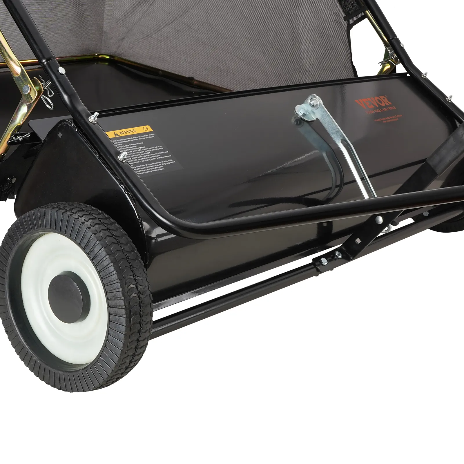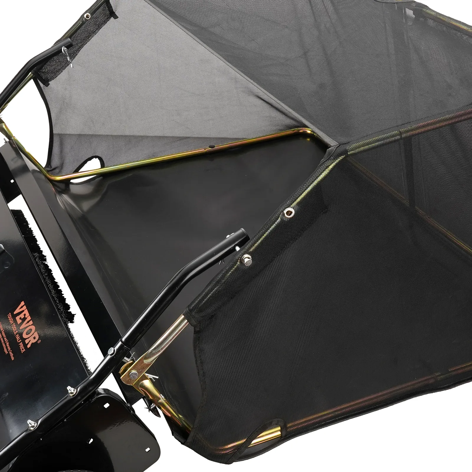 VEVOR Barredora de césped, 48.5", 26 pies cúbicos, barredora de remolque detrás del patio, diseño de cuerda de descarga y resistente, duradero de usar, recolector de hojas y césped con altura de barrido ajustable para recoger escombros y césped