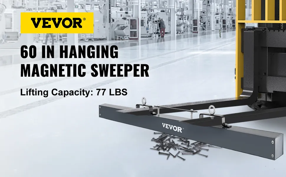 Esta barredora magnética tipo suspensión mide 60 pulgadas de largo y 3,9 pulgadas de ancho. Es una herramienta perfecta para recoger clavos, tornillos y muchos otros objetos metálicos esparcidos por todo el lugar.