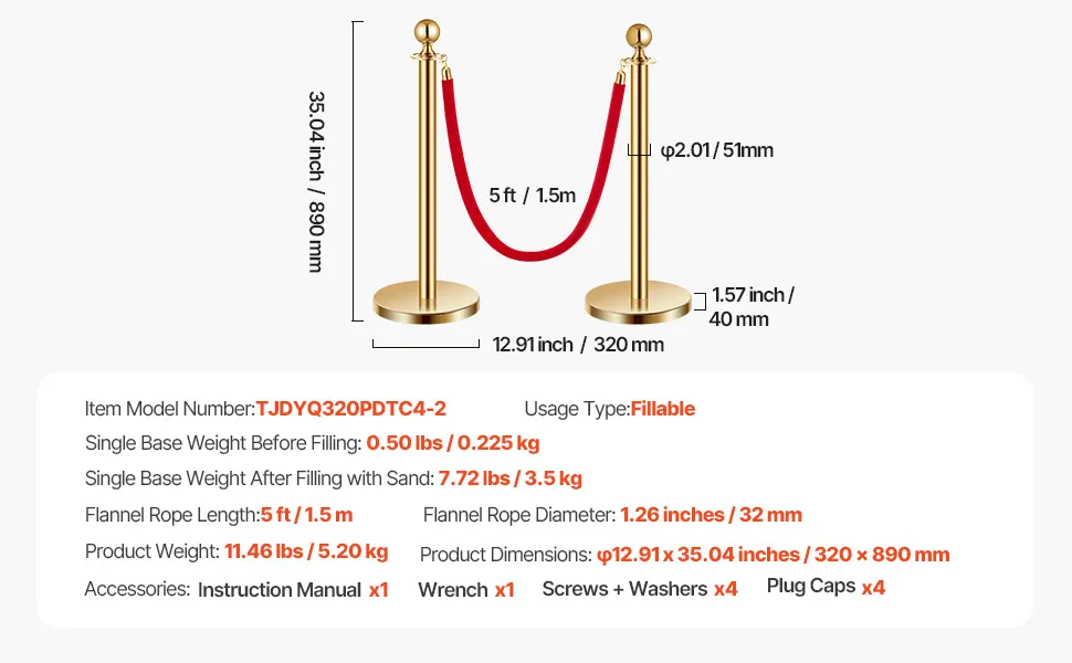 Montaje rápido: ¡No se necesitan herramientas! Simplemente rellénelo con arena y atornille la base en su lugar, y sus cuerdas y soportes de terciopelo estarán listos para usar. Fácil de instalar y aún más fácil de usar cuando lo necesite.