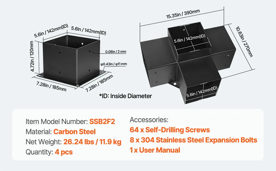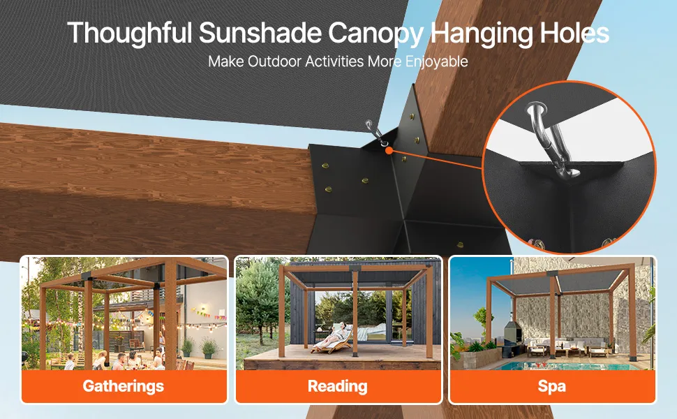 • Soportes de pérgola de cuatro vías de 15 x 15 cm: Este kit de soportes para pérgola, duradero y resistente, cubre las vigas de madera, impidiendo que se pudran por la lluvia y la luz solar intensa. Está diseñado para las especificaciones estándar de 15 x 15 cm y admite dimensiones reales de 142 x 142 mm (5,6 x 5,6 pulgadas) tanto para madera blanda como dura.