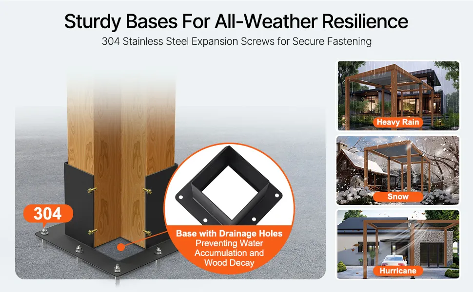 Nuestros soportes, disponibles en varios tamaños y especificaciones, son compatibles con diversos postes de madera estándar. Fabricados con placas gruesas de acero al carbono, están soldados para mayor durabilidad y recubiertos para resistir la corrosión y el óxido. Elija VEVOR para una solución segura.