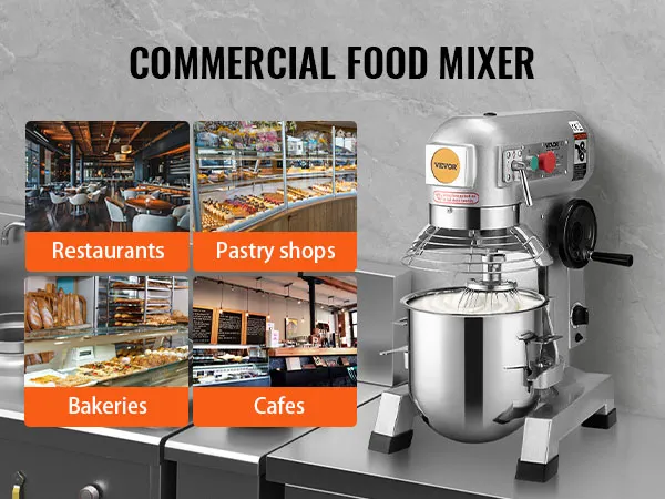 • Wide Application: The food mixer is suitable for restaurants, hotels, pizzerias, bakeries, commercial kitchens, etc. It is excellent for mixing most types of foods such as creams, vegetables, fillings, and dough.