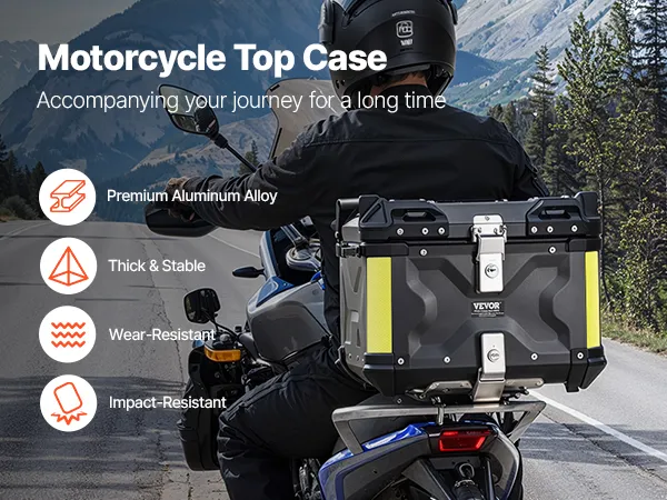 Nuestro baúl para motocicleta de aleación de aluminio es resistente a los impactos y a la intemperie. El suave forro interior protege sus artículos y es fácil de limpiar. Incluye una cubierta anticaída duradera, un cierre de resorte antipalanca y un diseño con múltiples bolsillos. El cojín trasero brinda soporte.
