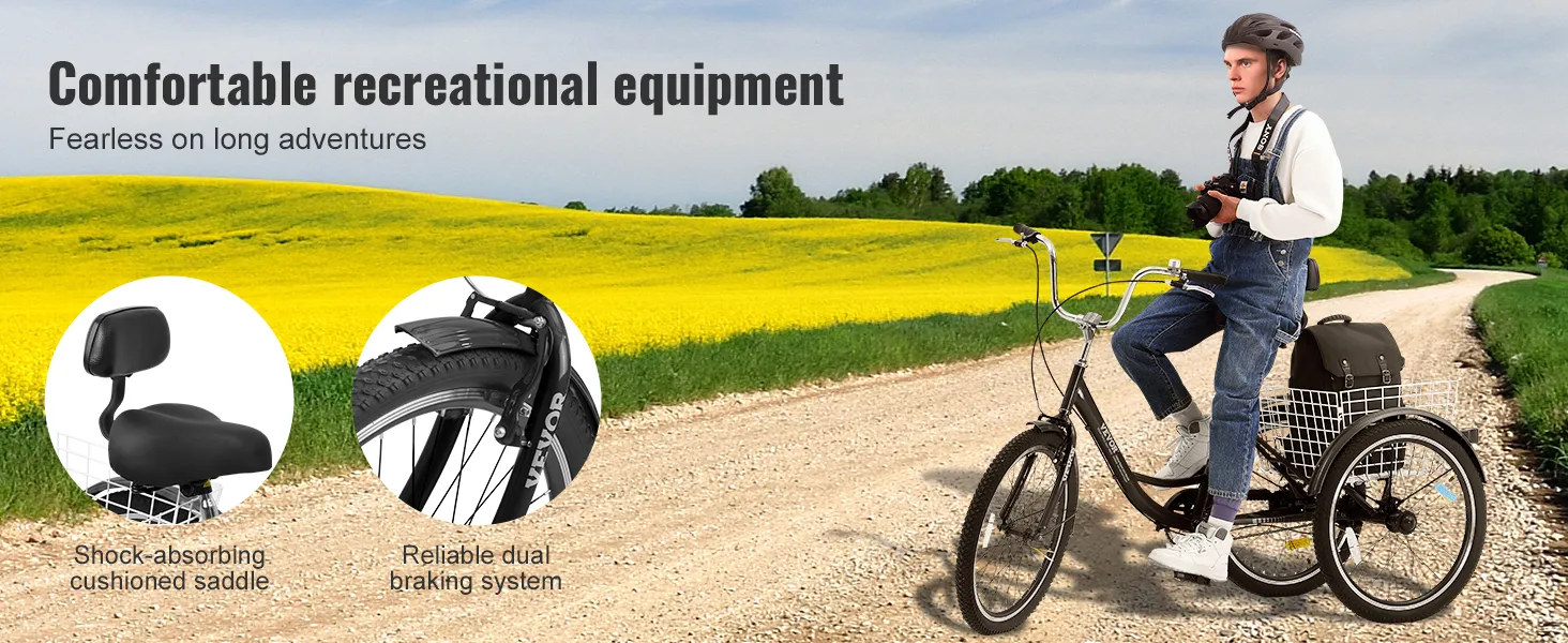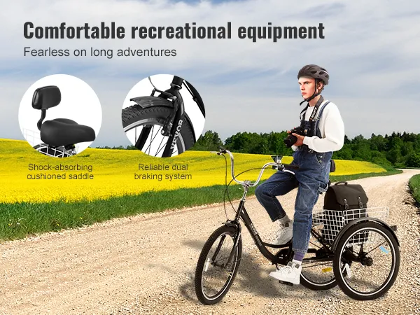 El lujoso sillín acolchado y suave y las suaves empuñaduras de goma garantizan una experiencia de conducción cómoda. Esta bicicleta de tres ruedas te hace sentir como si estuvieras montando en una nube y los viajes largos no serán incómodos.
