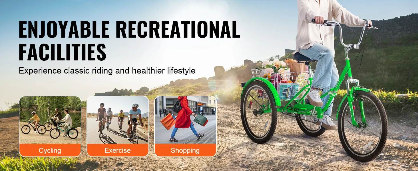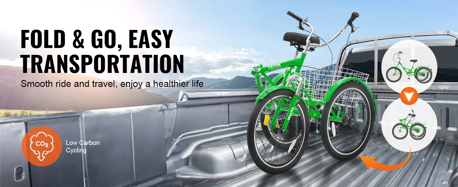 El compañero ideal para viajes saludables. Los triciclos para adultos de 3 ruedas VEVOR cuentan con un diseño plegable que te permite guardarlos en el camión y llevarlos a cualquier parte. Ya sea para ir al trabajo, de compras o para dar paseos de ocio, puedes disfrutar fácilmente de un ciclismo con bajas emisiones de carbono, lo que añade comodidad a tus viajes.