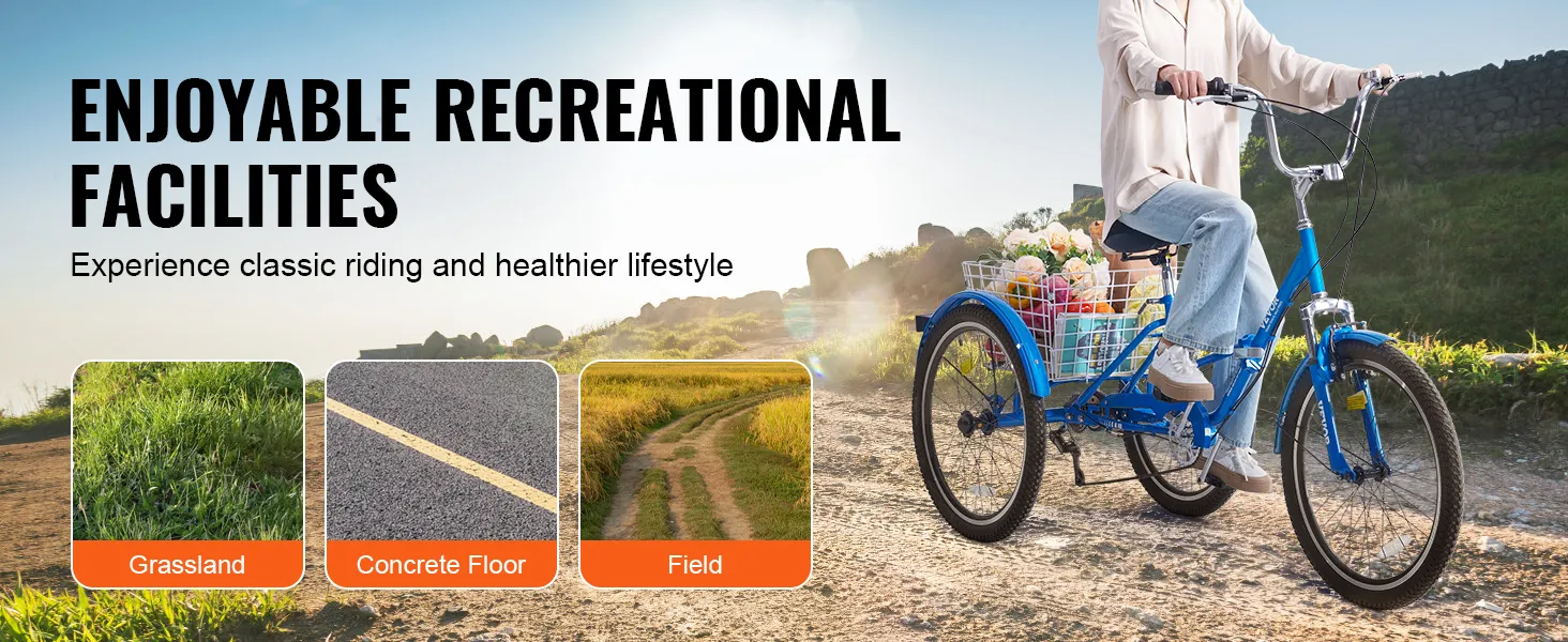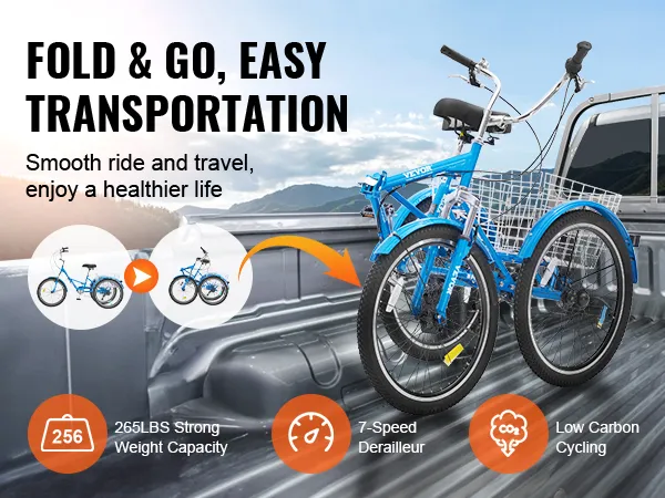 El mejor compañero para viajes saludables, los triciclos para adultos de 3 ruedas VEVOR cuentan con un diseño plegable, lo que le permite guardarlos en un camión y llevarlos a cualquier parte. Ya sea que vaya al trabajo, vaya de compras o salga de paseo, puede disfrutar fácilmente de una bicicleta con bajas emisiones de carbono, añadiendo comodidad a sus viajes.