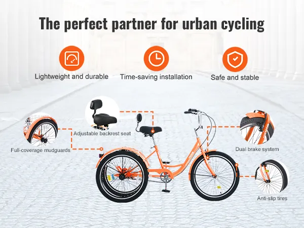 Diseño de una sola velocidad: la construcción de una sola velocidad es simple, simplifica los pasos de instalación y es fácil de usar. El triciclo para adultos está diseñado paso a paso, es fácil de manejar, apto para principiantes, apto para personas mayores, mujeres y hombres, lo que lo convierte en su opción preferida para viajes saludables.