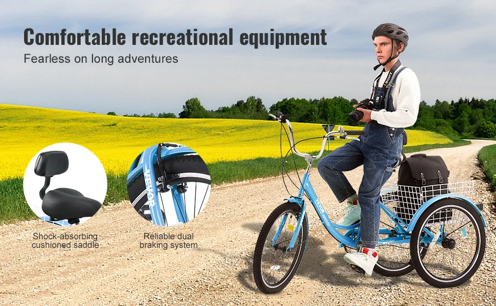 El lujoso sillín acolchado suave y las empuñaduras de goma blanda garantizan una experiencia de conducción cómoda. Esta bicicleta de tres ruedas te hará sentir como si estuvieras andando sobre una nube y los viajes largos no serán incómodos.