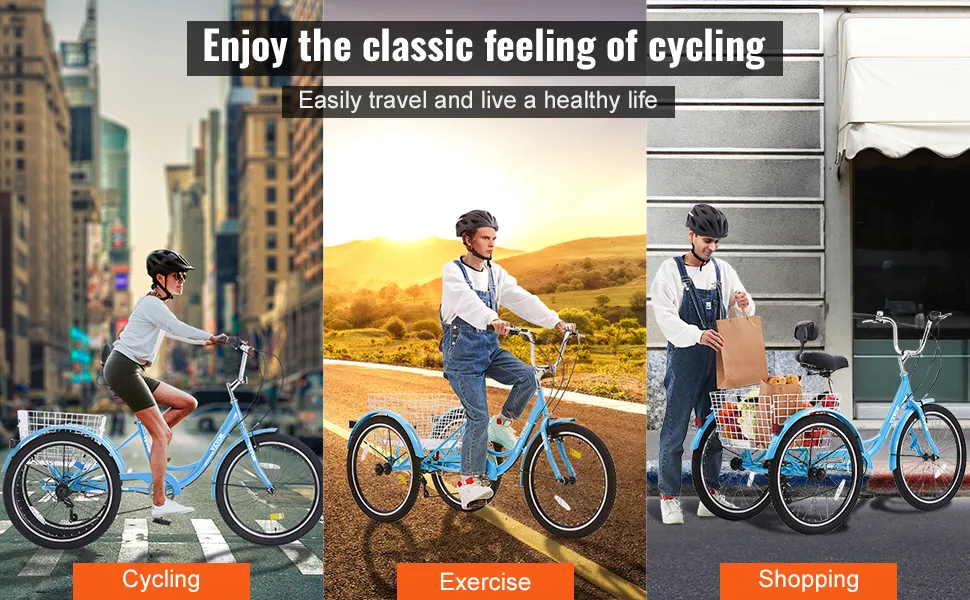 El marco de acero al carbono de alta resistencia garantiza estabilidad y durabilidad, ofreciendo un andar suave y cómodo sin sentirse cansado o incómodo. El cambio ajustable de 7 velocidades hace que el triciclo para adultos sea más fácil de manejar en los cambios de terreno en subidas, bajadas y caminos planos.