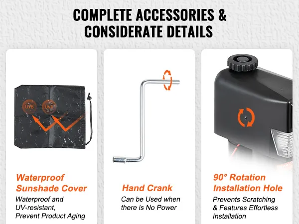 Proporcione todo lo que necesita: el gato de lengüeta eléctrico viene con una cubierta impermeable parasol, que protege contra el agua y los rayos UV para evitar el envejecimiento del producto. El orificio de instalación giratorio de 90° evita la interferencia con el portón trasero, lo que garantiza un proceso de instalación sin complicaciones. Disfrute de la tranquilidad de saber que su puerta trasera permanecerá nivelada.