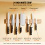 VEVOR Soporte magnético para cuchillos con imán fuerte mejorado, organizador de tiras de cuchillos sin perforación de 24 pulgadas para pared, almacenamiento multifuncional, estante para cuchillos de madera de acacia, barra para cuchillos de cocina, utensilios, herramientas