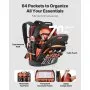 VEVOR Mochila para Herramientas, Mochila de Trabajo 365 x 195 x 470 mm con 64 Bolsillos, Compartimento para Portátil y Base Moldeada, Organizador de Herramientas para Electricistas, Reparadores