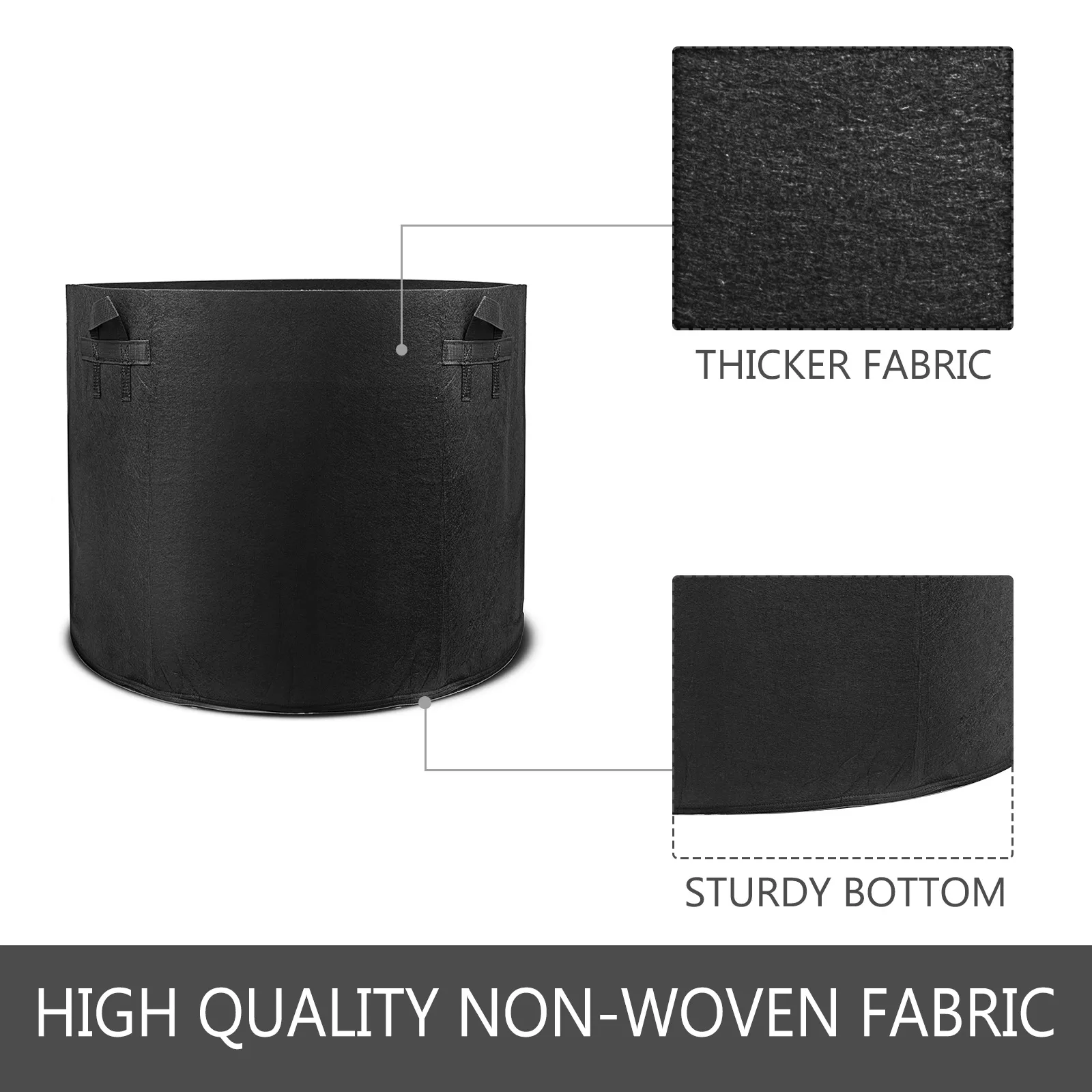 Construida con tela no tejida de PET de alta calidad, esta bolsa de cultivo de plantas es duradera, resistente al desgaste y altamente resistente a los desgarros.