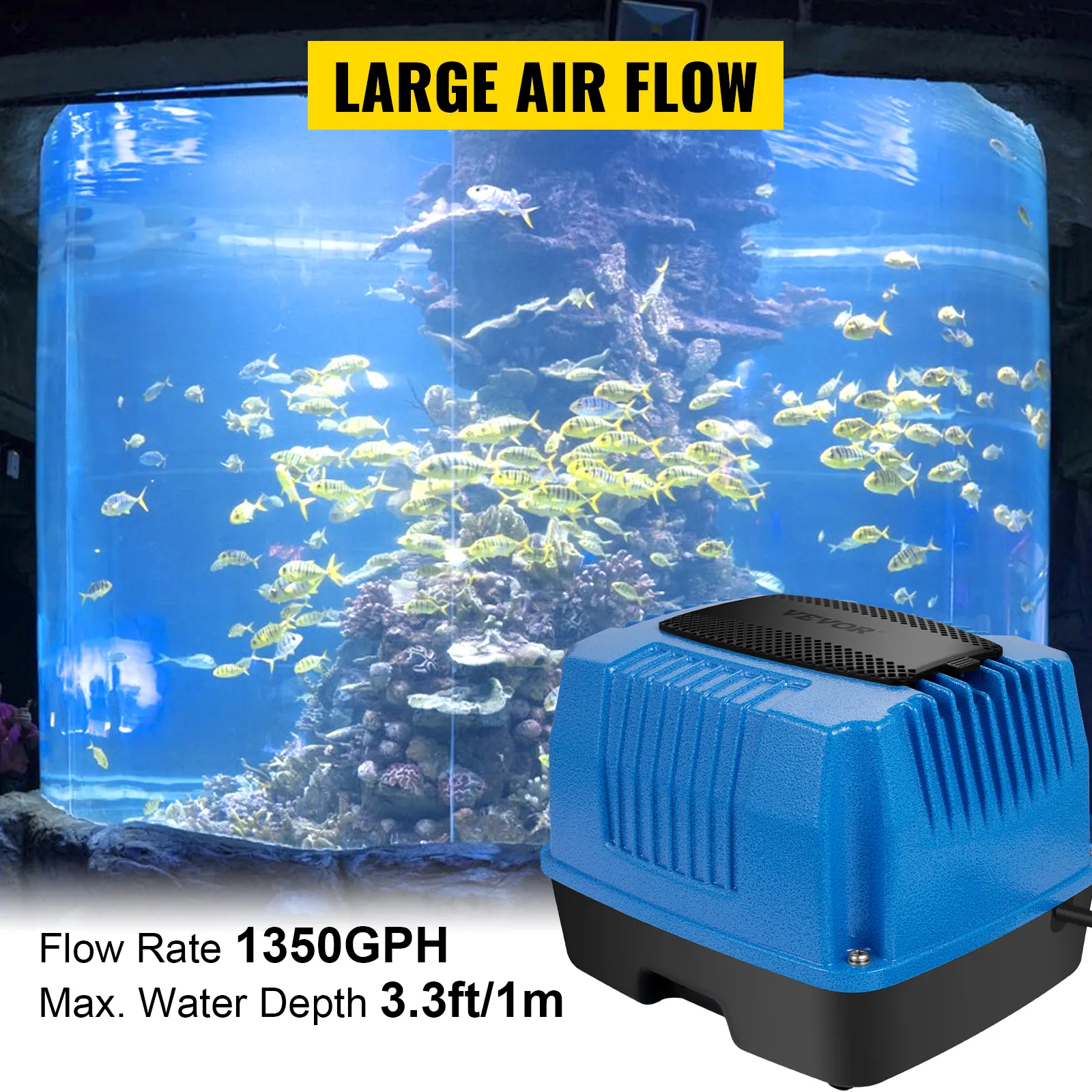 Esta bomba aireadora séptica cuenta con una potente salida de aire. La salida máxima de aire de la bomba es de 1350 GPH / 85 LPM y la profundidad máxima del agua es de 3,3 pies / 1 m. Así que ya no tienes que preocuparte por la falta de oxígeno para la pecera.