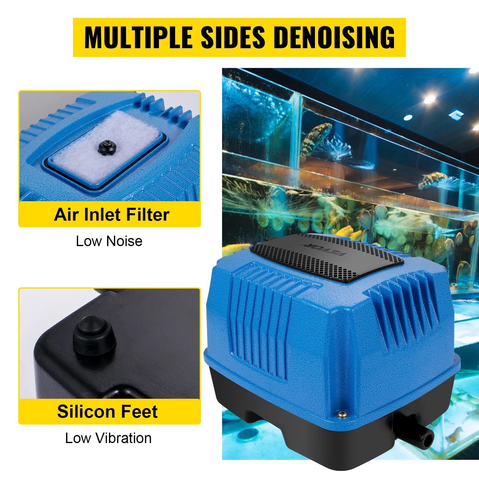 Este aireador de bomba de aire séptico tiene una potente salida de aire y presión, perfectamente adecuado para estanques o tanques de peces, acuarios, supermercados de mariscos y sistemas hidropónicos y sépticos.