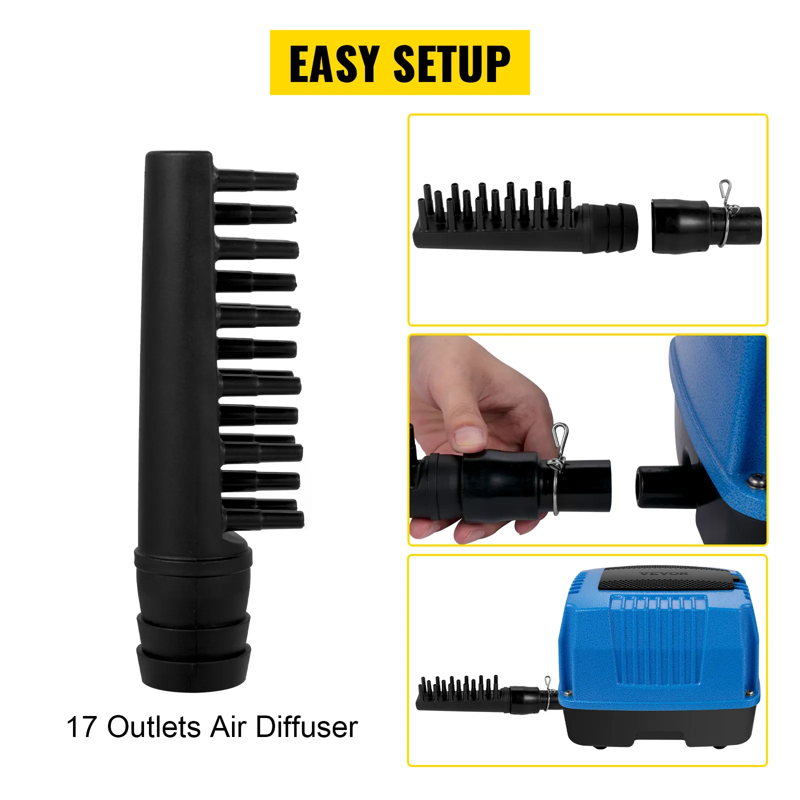 Nuestra bomba de aire séptica aeróbica proporcionará un difusor de aire adicional con 17 salidas y un manguito de reducción. Es fácil para usted conectar con los tubos o las piedras de aire, las que compró usted mismo.