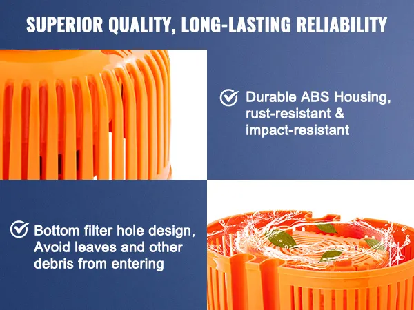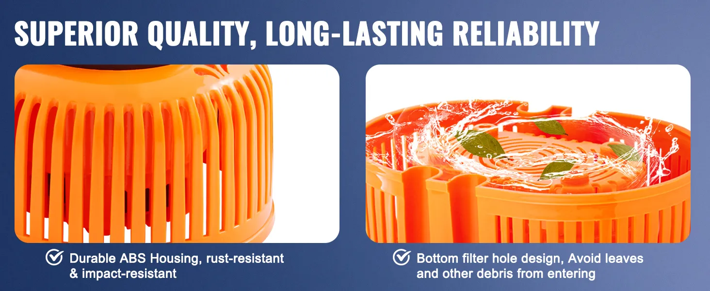 Alta calidad: construida con una carcasa de ABS duradera, esta bomba sumergible para cubierta de piscina es resistente al óxido y a los impactos para filtrar los desechos. Cuenta con un diseño de orificio de filtro inferior, que evita eficazmente que entren hojas y otros desechos en la máquina, lo que garantiza la seguridad durante el uso.