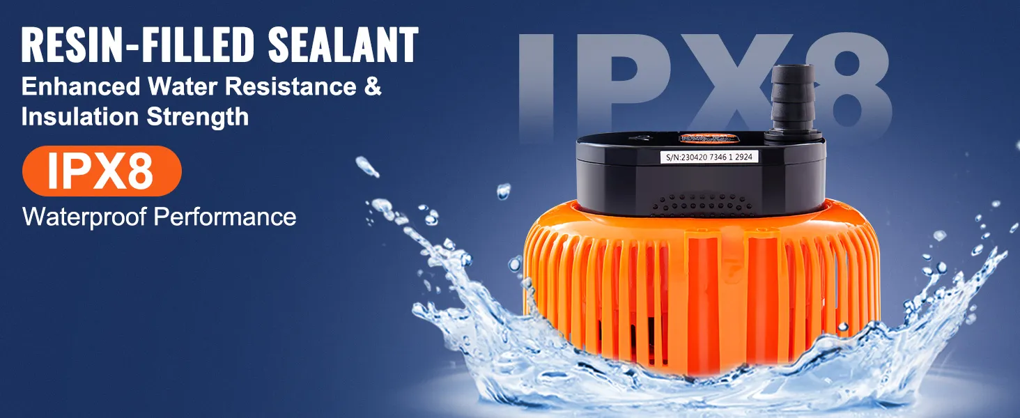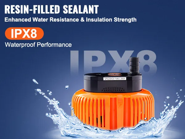La bomba para cubierta de piscina está llena de sellador de resina, lo que ofrece una clasificación de impermeabilidad IPX8 y un excelente rendimiento de aislamiento, lo que la hace más duradera.