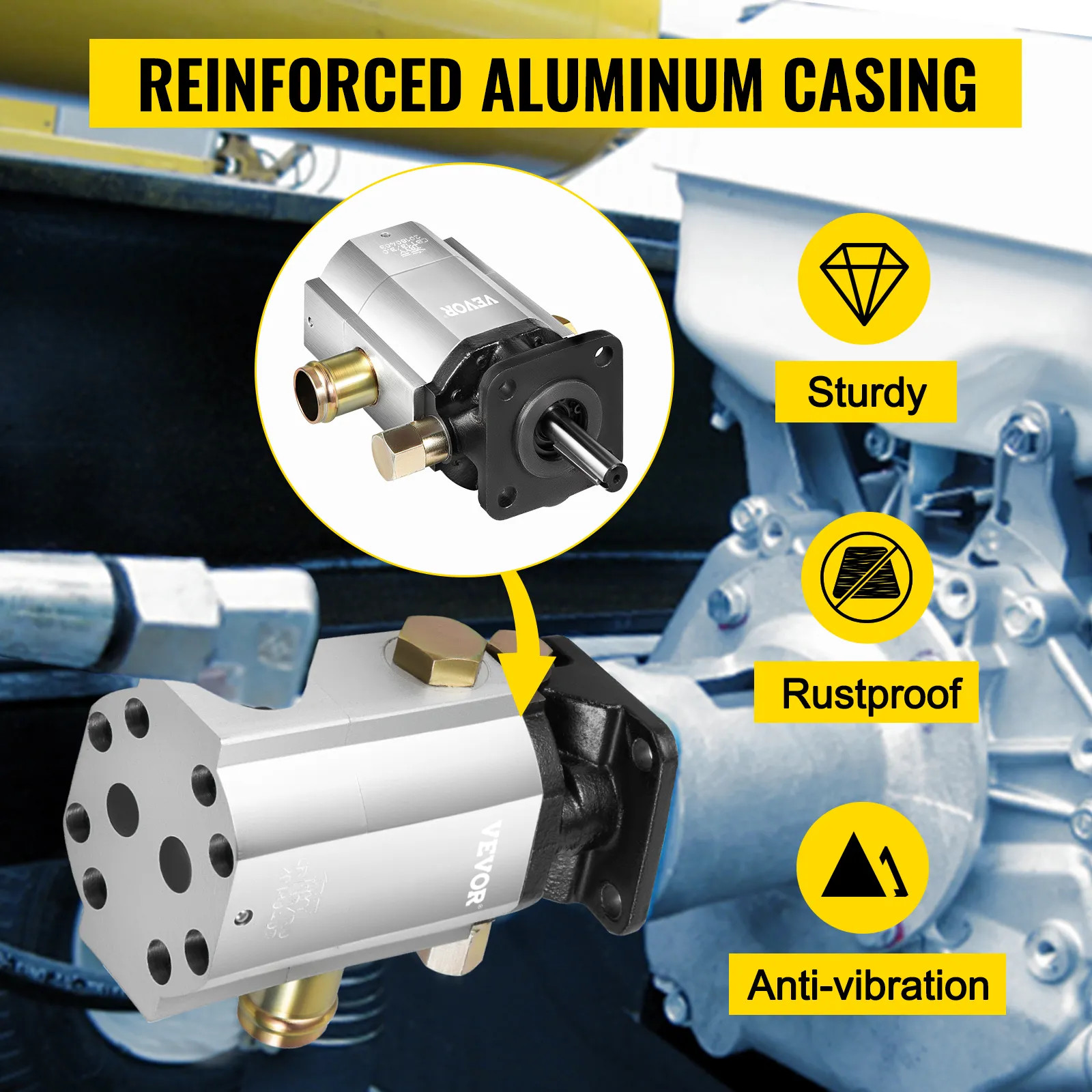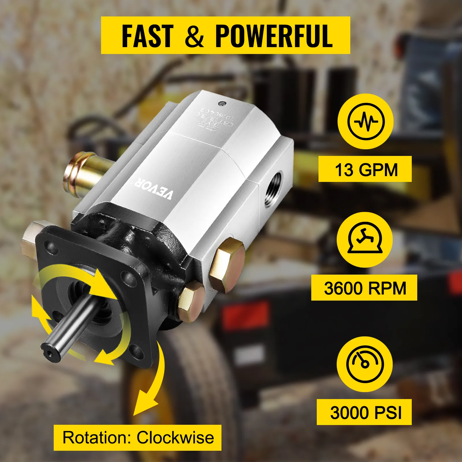 - Esta bomba hidráulica de engranajes arranca rápidamente y genera una gran velocidad de rotación. Además de su rendimiento de alto flujo, proporciona una potencia inigualable a su partidor de troncos, lo que hace que su trabajo sea más eficiente que nunca. Elija VEVOR y vea la diferencia.