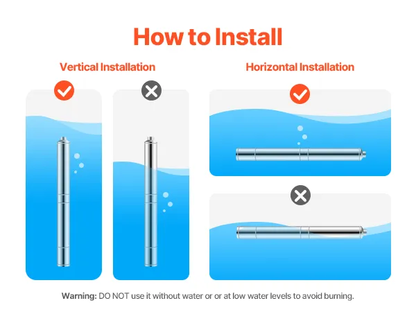 Ideal for Any Water Source: Our deep well pump is built to handle a variety of water sources, making it ideal for agricultural irrigation, livestock watering, residential water supply, river extraction, and pond maintenance. Warning: Put a layer of gauze at the inlet for a new drilled well. Ensure your well casing diameter exceeds the pump diameter by at least 0.39 in/10 mm for optimal fit. Do not use it without water or at low water levels to avoid burning.