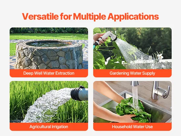 This water pump submersible well is ideal for deep well water extraction, garden irrigation, agricultural irrigation, and home water supply. It meets diverse water needs, offering a convenient and efficient solution for any setting.